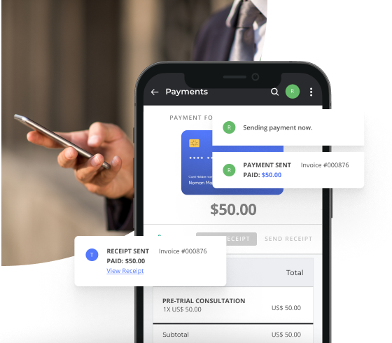 Quickly send estimates and invoices. Process payments online or on the spot.